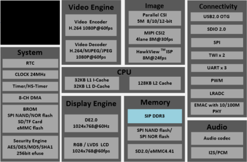 基本可以认为是在V3的基础上增加了128MByte SIP DDR3内存版本,或者在V3S基础上替换了内存颗粒的版本,基础晶圆是一致的。