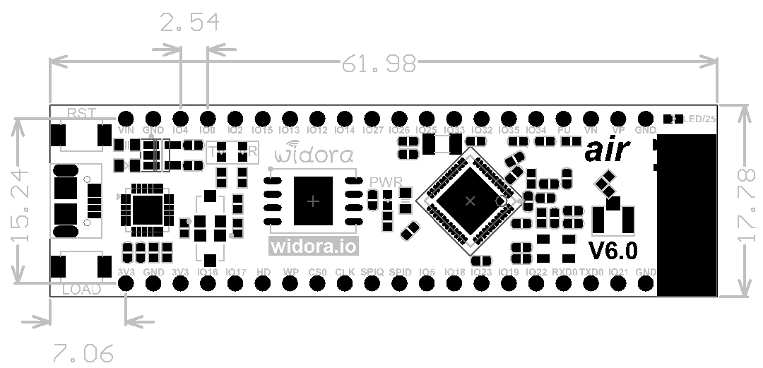 AIR有两个按键,分别是复位按钮和DL按钮,默认状态均上拉到3.3V。随时按下CHIP_PU会使ESP32复位,如果在解除复位状态前按下DL按钮,ESP32会进入串口下载代码状态。