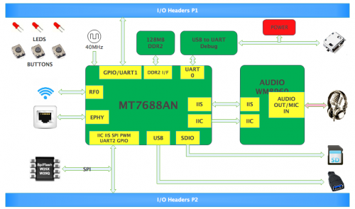 - NEO是一款电子原型平台,硬件基于MT7688AN Wi-Fi SOC,软件基于OpenWrt / LEDE 等Linux发行版,提供了丰富的外设和存储空间。允许使用 C , SHELL , Node.js , Python等语言进行开发。硬件资源如下: