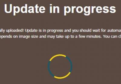 可以看到有三排更新按钮,第一排用于刷系统固件,例如Widora固件、OpenWrt、SDK等等。 第二排用于升级Uboot,第三排用于刷无线校准文件。 刷机进行时页面如下(一直持续),刷完Widora会自动重启(网页不会自动刷新,WLED会闪10次左右表明刷机完成)。