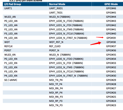 widora默认支持9个GPIO,分别是GPIO0(实为GPIO11),14,15,16,17,39,40,41,42。如需再多的GPIO需要改动引脚复用关系。